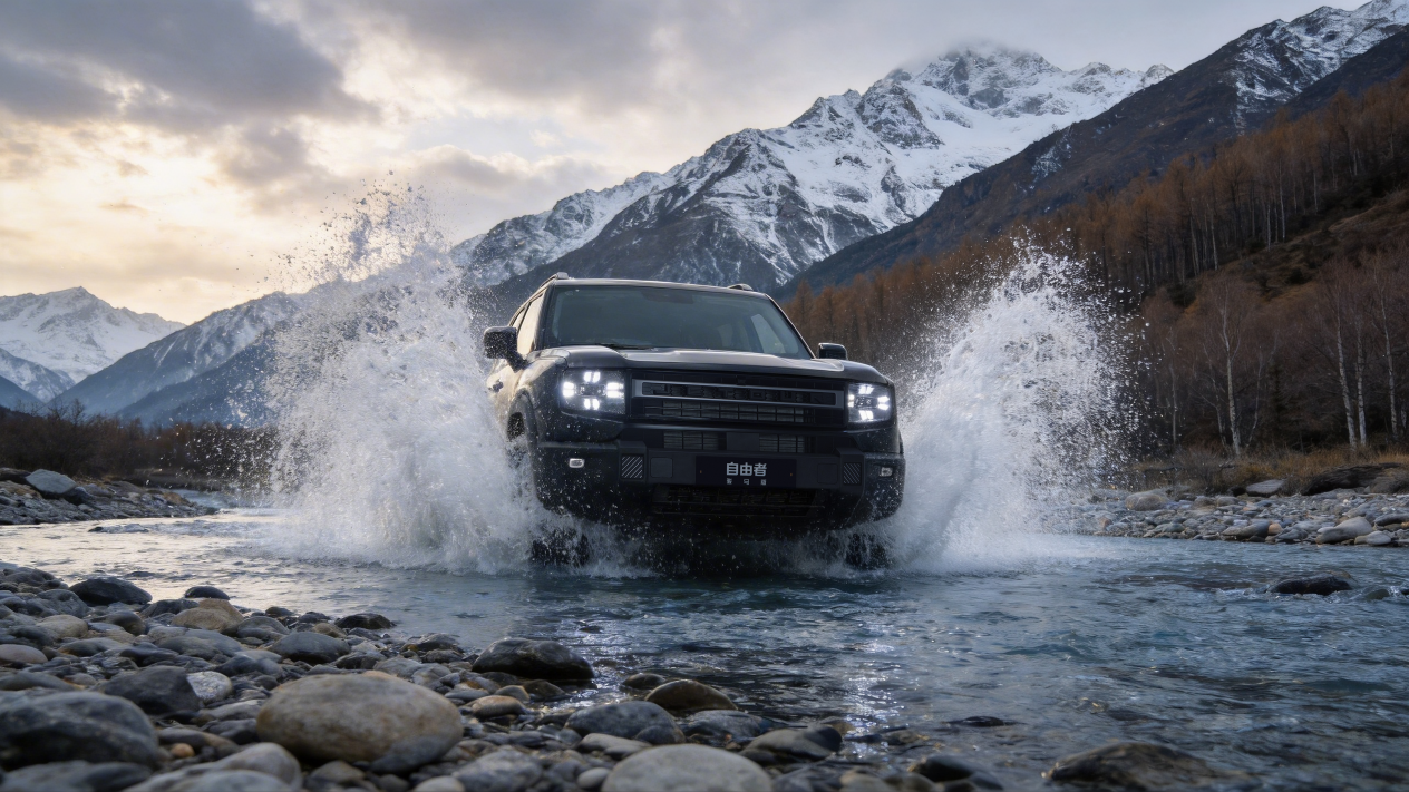 自由者骏马版则更侧重于城市与轻越野场景,最小离地间隙200mm,涉水深度700mm,车身高强度钢占比80%。两款车型均未强调极端越野能力,而是将四驱系统与通过性配置作为提升日常驾驶安全与场景适应性的技术支撑。